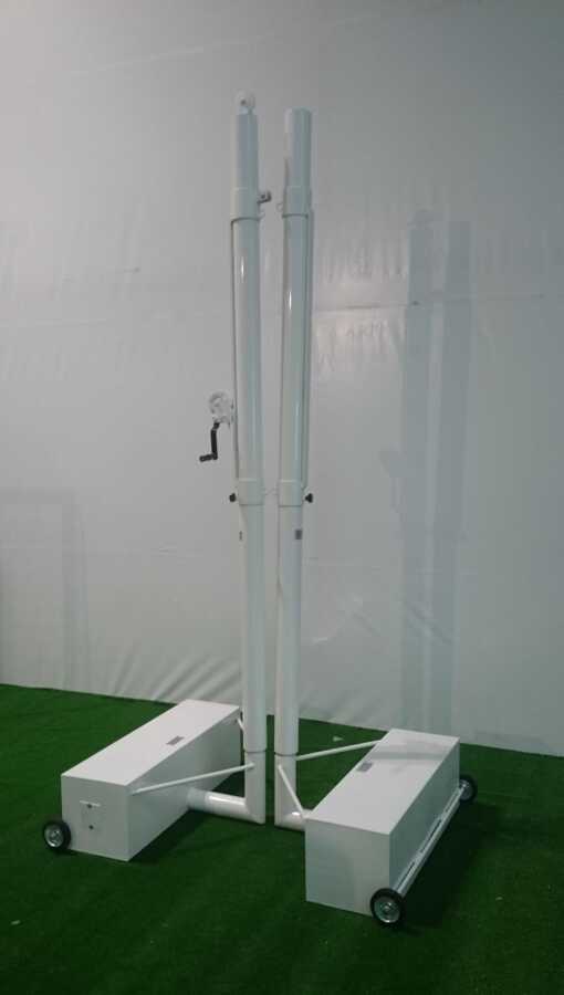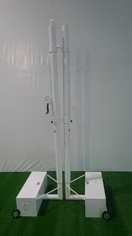 ürün içeriğinde 2 adet alüminyum voleybol direği ve 2 adet bunlara seyyar tekerlekli alt taşıma bölümü bulunmaktadır.