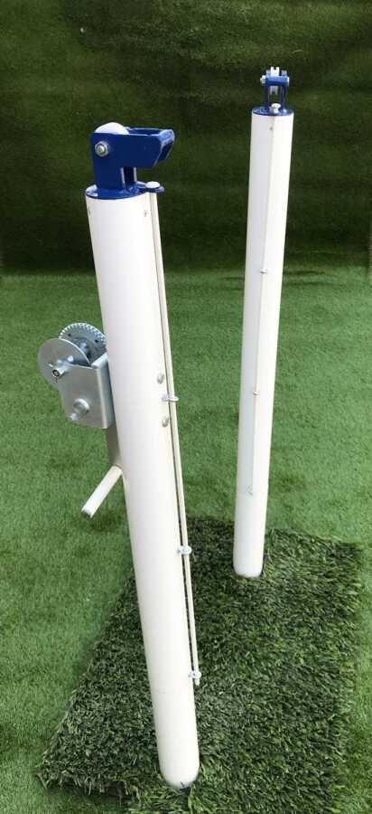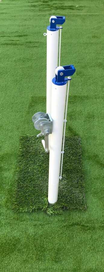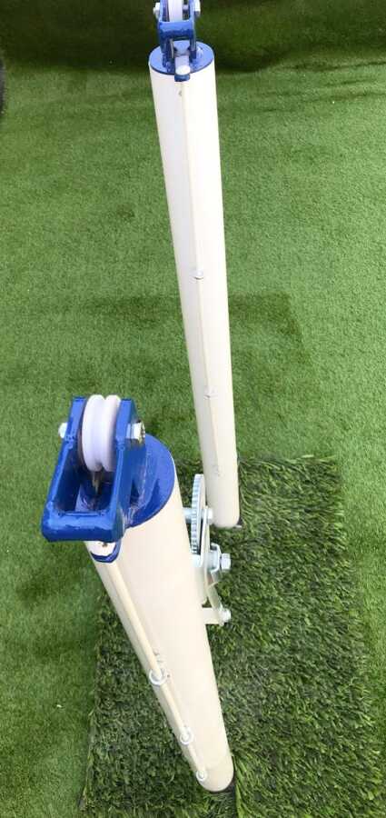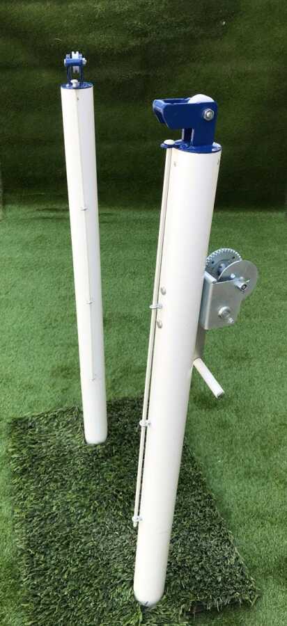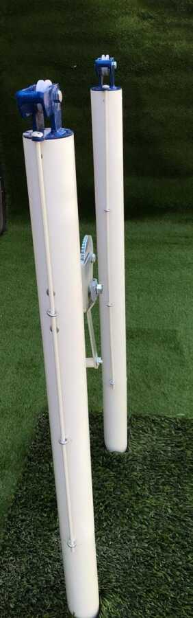 * Direklerin üst bölümünde halat geçişini sağlayan makaralar bulunmaktadır. Makaralar sayesinde halatın direğin arka tarafına aktarılarak sabit olarak bağlanmasını sağlanır. Bu direk filenin sabit olarak bağlandığı direktir.