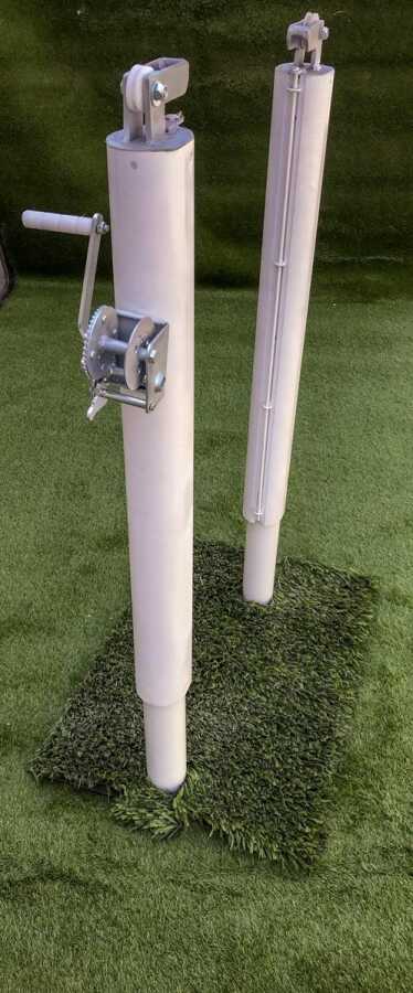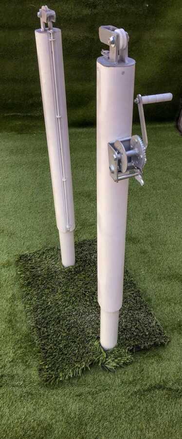 * Direklerin üst bölümünde halat geçişini sağlayan makaralar bulunmaktadır. Makaralar sayesinde halatın direğin arka tarafına aktarılarak sabit olarak bağlanmasını sağlanır. Bu direk filenin sabit olarak bağlandığı direktir.