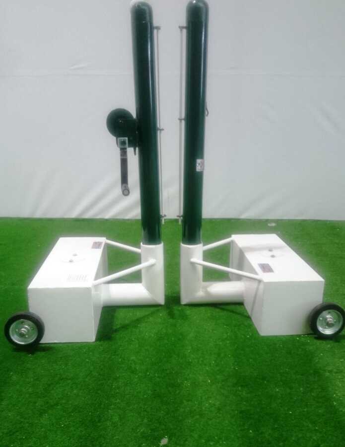 * Direklerin üst bölümünde halat geçişini sağlayan döküm başlıklar bulunmaktadır. Bu başlıklardan 1 adedi üzerinde ki kanal sayesinde halatın direğin arka tarafına aktarılarak sabit olarak bağlanmasını sağlar. Bu direk filenin sabit olarak bağlandığı direktir.