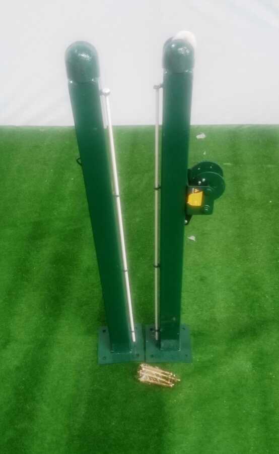 Mapalı ithal mekanizmalı ürünümüz file( ağ) gerdirme özelliğine sahiptir. Gerdirme işlemini gerçekleştirildiğinde ''Tenis Direği Gerdirme Aparatı'' üzerinde bulunan özel kilit mekanizması sayesinde file gerginliği bozulmadan kullanılması sağlanmış olur. Kutu profilden imal edilmiştir. Ankrajlarının uygulanacak yüzeye yerleştirilerek bu ankrajlar içerisine direklerin yerleştirilmesi ile kullanıma hazır hale gelir. Kullanılmadığı zamanlarda direk çıkartılarak saha başka amaçla da kullanılabilir. Yeşil renkde üretilen ürünümüz makarası sayesinde file (ağ) gerdirme özelliğine sahiptir. Profesyönel ve amatör oyun alanlarında kullanıma uygundur. Ürün üst bölümünde döküm başlıklar bulunmaktadır. Özel derlinden makarası ile bu başlıklar mükemmel gerdirme sağlar ve uzun ömürlüdür.