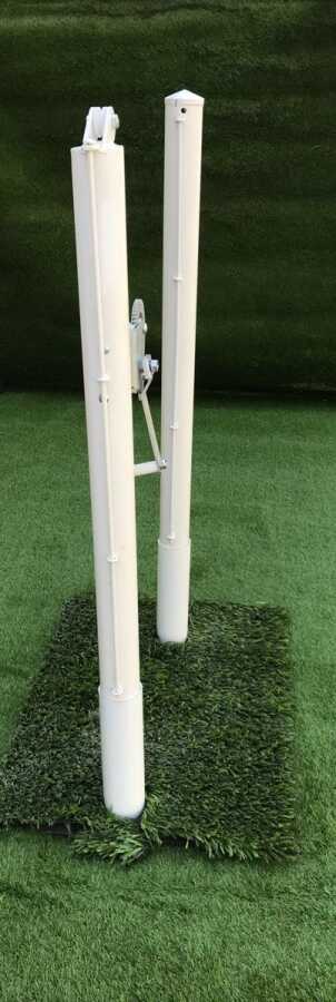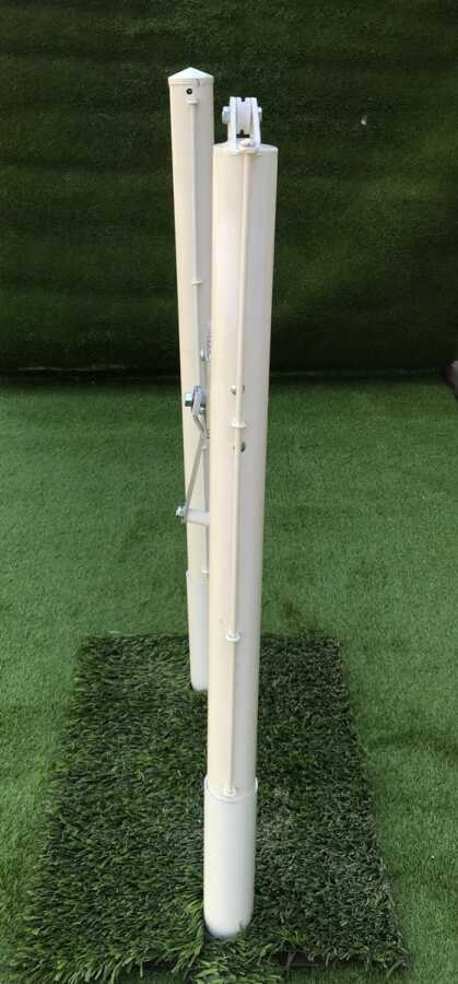 * İkinci direk üzerinde bulunan makara filede bulunan çelik halatın gerdirme aparatına aktarılmasını sağlamaktadır. Bu direk üzerinde gerdirme aparatı bulunan ve filenin gergin bir şekilde bağlanılmasını sağlayan direktir.