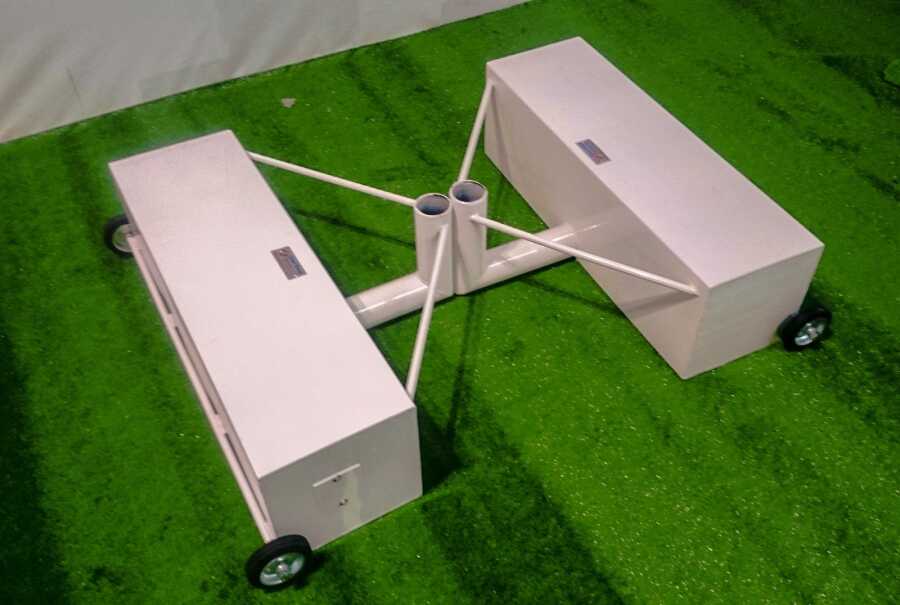 Ürün metal sacdan 70 cm uzunluk, 30 cm genişlik 30 cm yükseklik ölçülerinde üretilen hazneye uygun bağlantı boruları montajı ile hazırlanır. Ürünün daha dengeli olabilmesi için direk bağlantı noktası ile hazne arası mesafe genişletilmiştir.