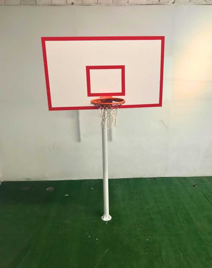 Adelinspor Standart Basketbol Potası Tek Direk 114/3 mm Boru 105*180 18 mm MDF Ahşap Panya 45 cm Yaylı Çember: