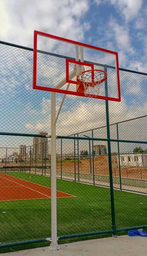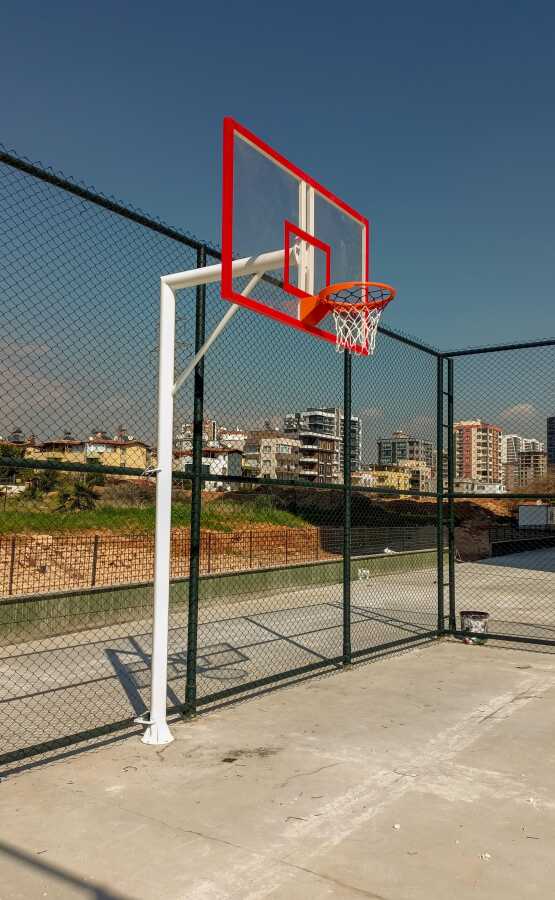Adelinspor Standart Basketbol Potası Tek Direk 114/3 mm Boru 20 mm Akrilik cam Panya 45 cm Sabit Çember: