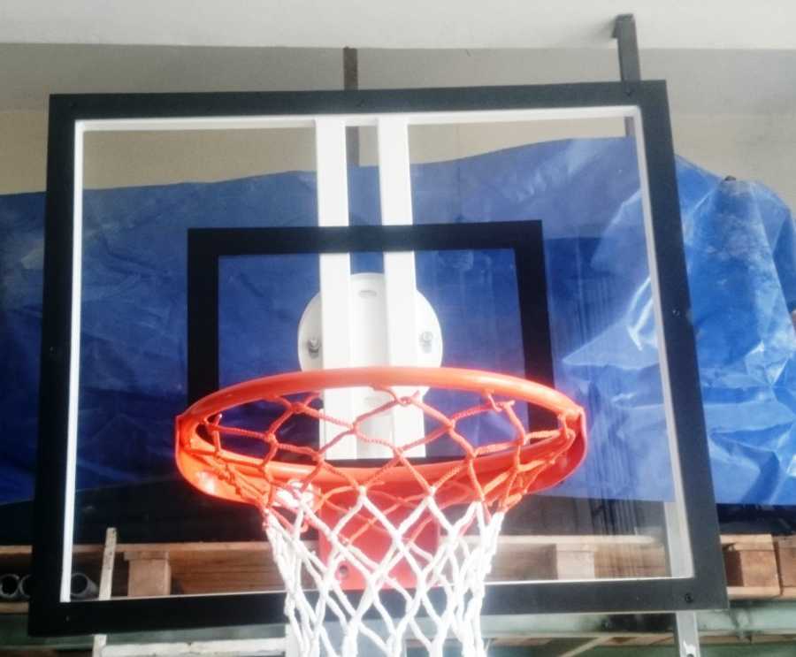 '' Adelinspor Duvara Monte Basketbol Potası'' Tek Noktadan Bağlantılı, 90*120 10 mm Akrilik Cam Panyalı, 45 cm Sabit Çemberli; Ürün içeriğinde 1 adet cam panya, 1 adet 45 cm sabit çember, 1 adet 4 mm floş ip çift rekli basketbol filesi, duvar bağlantı parçaları ve 4 beton dübeli bulunmaktadır.